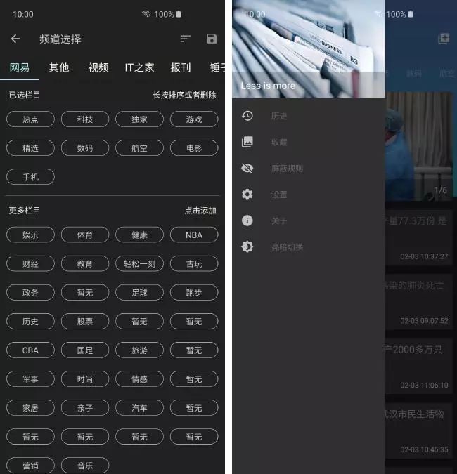 除此之外,Mere 新闻也有历史记录查看、收藏内容、内容屏蔽功能。