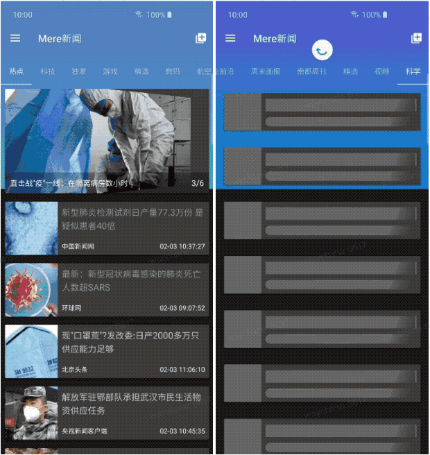 Mere 新闻采用标准 Material Design,新闻内容以卡片样式呈现。