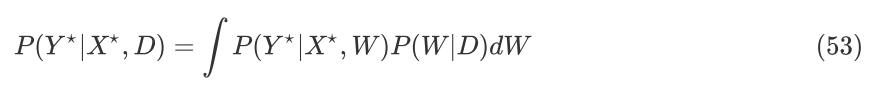 从公式(53)中可以看出,用 BNN 对数据进行概率建模并预测的核心在于做高效近似后验推断,而 VI 是一个非常合适的方法。