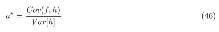 直观上讲,Cov(f,h) 越大,新估计的方差越小,控制变量效果越好。令: