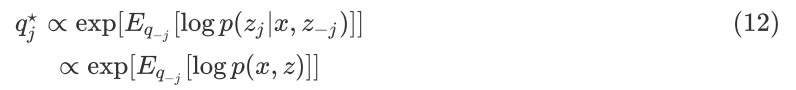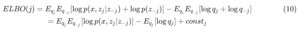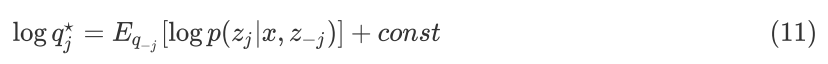 公式(10)可以看作是一个负 KL Divergence 项,为使得 ELBO(j) 最大,所以负 KL Divergence 为 0, 可得到:
