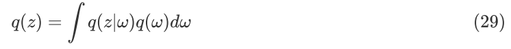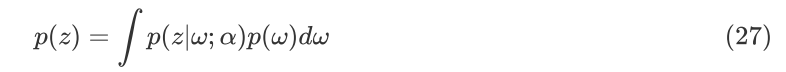 其中,p(w) 是一个显式分布密度函数,作为先验分布 p(z) 的先验分布,p(z|w;α) 是一个显式的参数分布密度函数,由参数 α 描述。