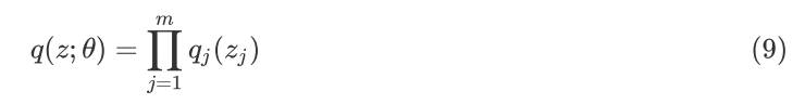MFVI 最早应用于统计物理,假设变分后验分布是一种完全可分解的分布,如下式: