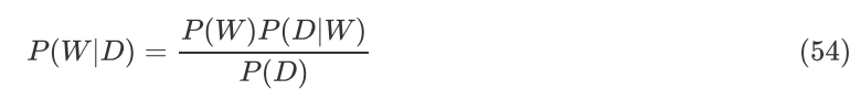 这里 P(W|D) 是后验分布,P(D|W) 是似然函数,P(D) 是边缘似然。