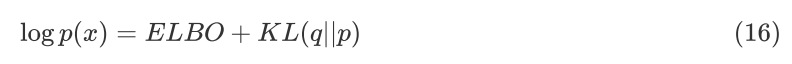 因为真实后验分布是未知的,直接优化公式(2)是一件比较有挑战的事情,VI 巧妙地将其转化为优化 ELBO 的问题。推导过程如下: