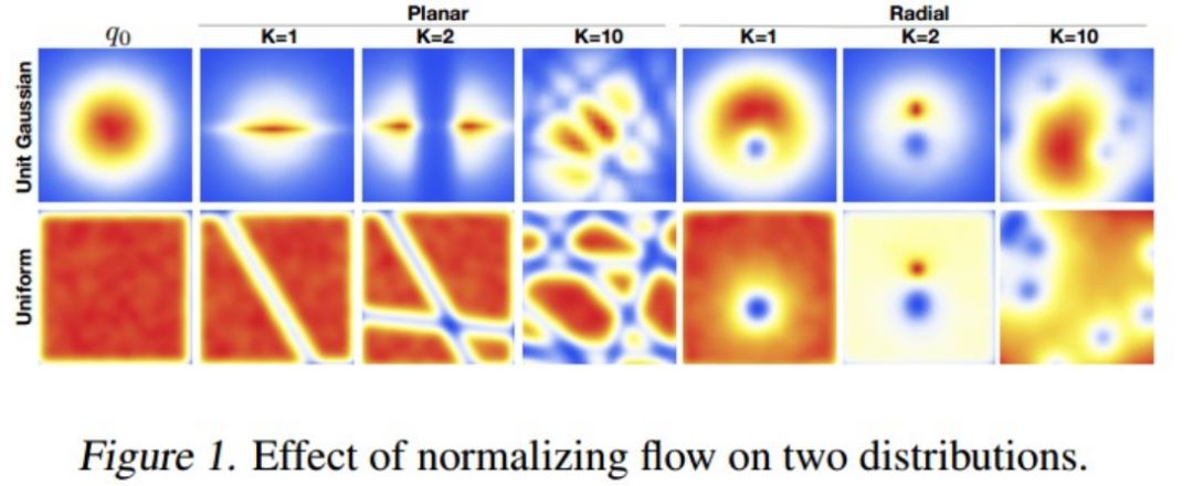Rezende 和 Mohamed 在 2015 年的 ICML 上提出了用归一化流作为变分后验分布,并给出了两种 baseline 分布变换,一种是 Planar (一种线性变换):