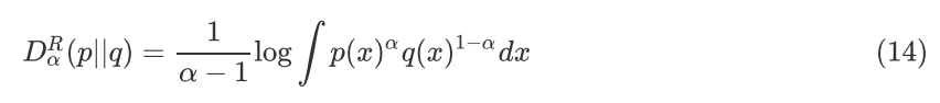 KL Divergence 是一种特殊的 α-Divergence,一种常见的 Renyi 定义如下: