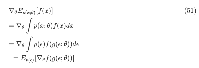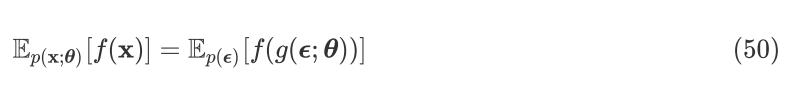 可以进行如此推导的依据是 law of the unconscious statistician (LOTUS) ,在 pathwise derivative 一节也会提到。