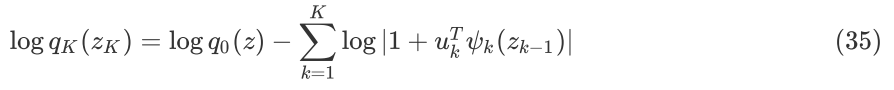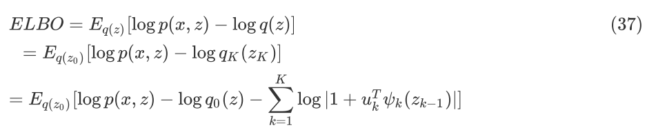以 Planar 为例,将归一化流代入到EBLO 中可以得到: