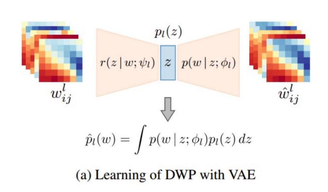 为统一符号,本文采用了与原文不同的符号表示,但示意图原理一致。从图中可以看出,BNN(Bayesian Neural Network)权重的先验分布可以通过构造一个 VAE 进行学习,而学习的数据则来自相似任务中具有相同网络架构的模型。