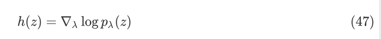 最优参数值是协方差和方差之比。为了方便计算,函数 h(z) 的选择是 score function,即: