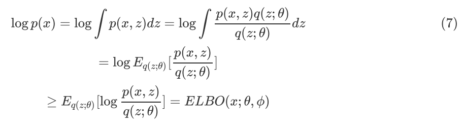ELBO 的形式推导可由 Jensen 不等式直接推导出,如下: