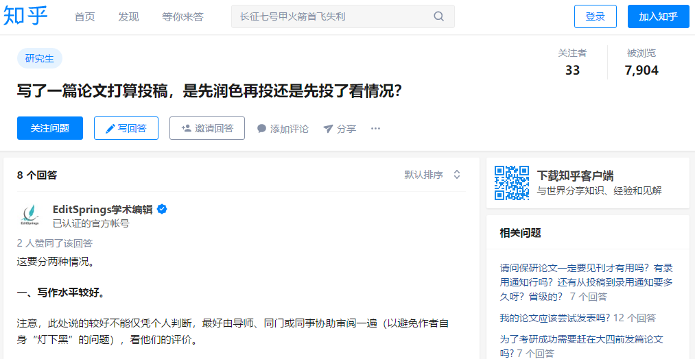 另外,AI科技评论在搜索引擎上,搜索了一下,在“百度知道”上,已经有了相关的问题询问。而在知乎上,已经有一些关于“是先润色,还是先投稿”的问答!