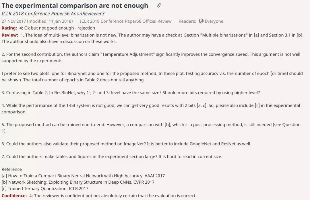 上图评审示例是ICLR 的已公开评审结果,评审给一篇拒绝论文的意见更加充分。