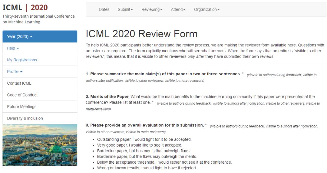 为了对新手投稿人友好,今年的ICML还公开了审稿人对每篇论文要填写的表格,让新手了解一下评审们都会怎么打分。