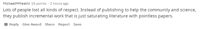 一些人发表论文不是为了推动社区进步,而是仅仅为了增量,这些人失去了尊重。
