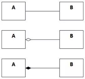 UML规定了关联的三种形式:普通关联、聚合(Aggregation)和组合(Composition)。