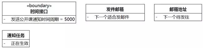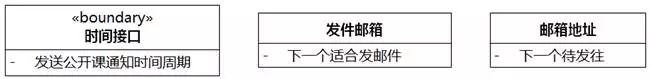 依照Ivar Jacoson[Jacobson 1992]的思想,在分析工作流我们进一步假设系统中存在三种类:边界类(Boundary Class)、控制类(Control Class)和实体类(Entity Class)。在模型中,我们通过不同的构造型(Stereotype)来表达。很多UML工具已经内置了这些构造型。即使不用构造型区分,从"某某界面","某某控制"等类的名字也可以了解该类在系统中扮演的角色。