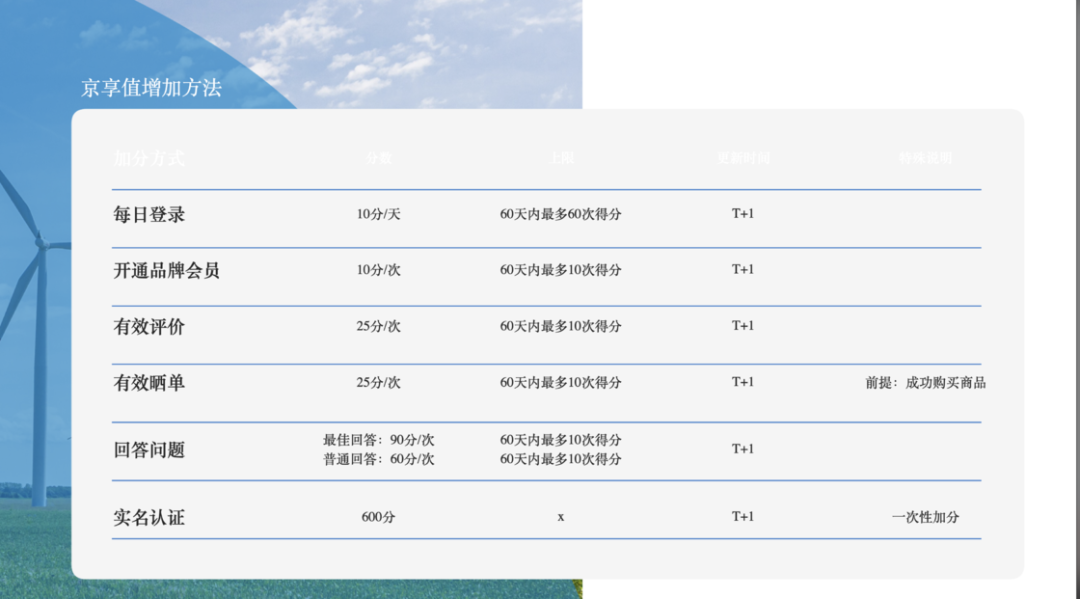 2017 年 9 月,京东商城将原有的「铜银金钻」等级制会员体系调整为「京享值」分值会员体系,而想要提升京享值,就需要通过以下几种方式: