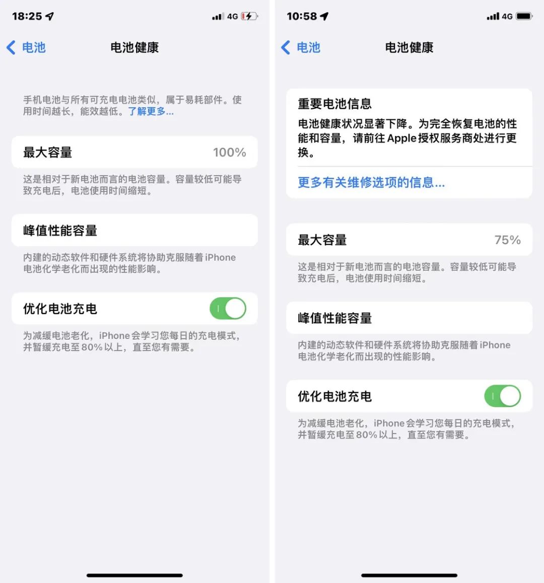 更换电池前后健康度