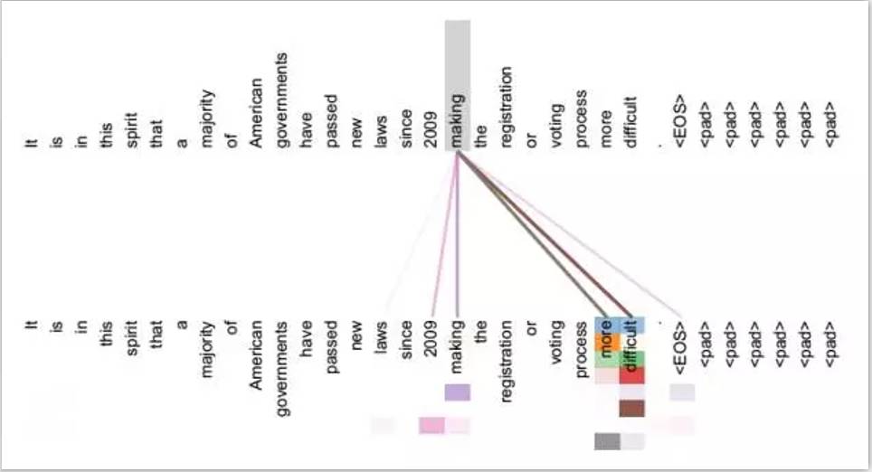 图7 self attention可视化实例,图片摘自《深度学习中的注意力机制》,张俊林