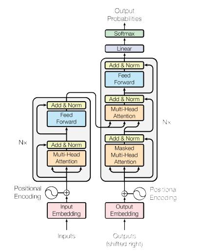 Self Attention也是在Scaled Dot-Product Attention单元里面实现的,如上图左图所示,首先把输入Input经过线性变换分别得到Q、K、V,注意,Q、K、V都来自于Input,只不过是线性变换的矩阵的权值不同而已。然后把Q和K做dot Product相乘,得到输入Input词与词之间的依赖关系,然后经过尺度变换(scale)、掩码(mask)和softmax操作,得到最终的Self Attention矩阵。尺度变换是为了防止输入值过大导致训练不稳定,mask则是为了保证时间的先后关系。