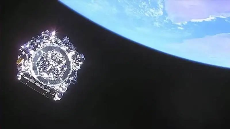 这是一张韦伯望远镜的太空图像,由发射火箭在分离之际所拍摄。