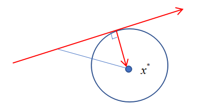 因此,史教授选择在前一方向上最优点处换沿垂直方向搜索,由于问题是2维平面上的优化问题,此时的方向恰恰就是负梯度方向,下一步做的就是最速下降法。该优化问题是一个海色矩阵为单位阵的凸二次优化问题,所以,最速下降法迭代一步就可以终止到唯一的全局最优解。