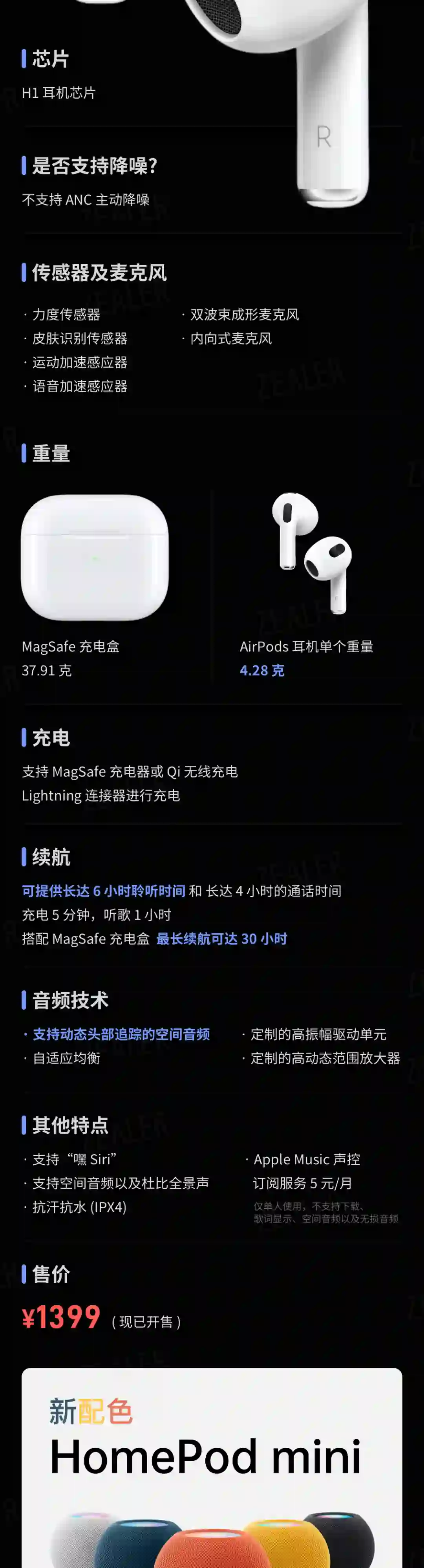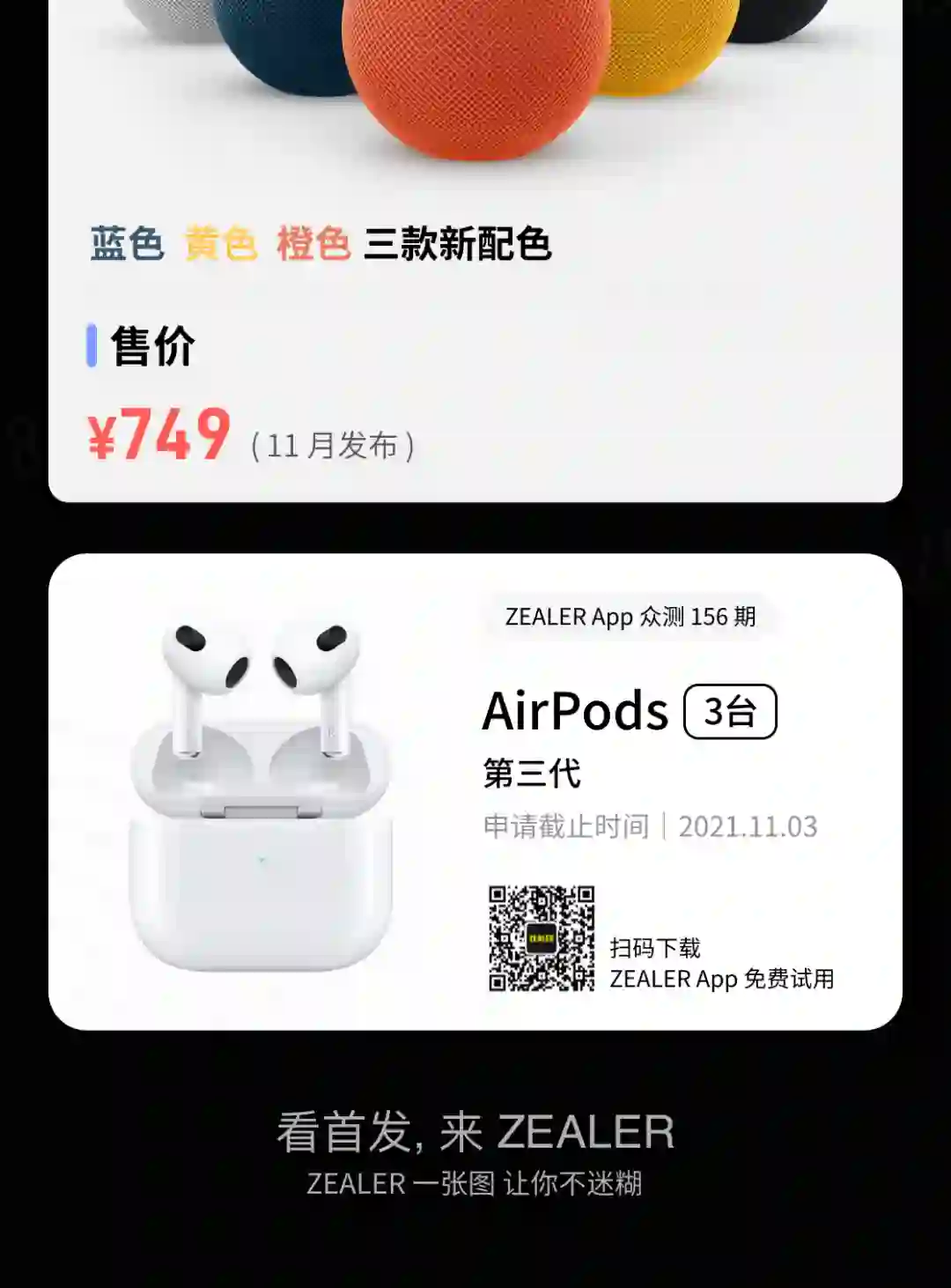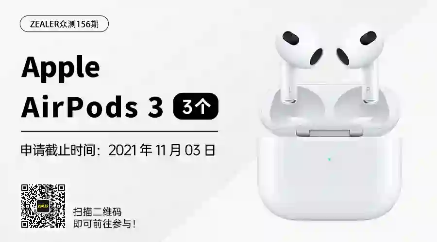 3 台 AirPods 3 上线 ZEALER 众测,全新支持空间音频,还有 30 小时超长续航!Apple 计算音频和 H1 芯片加持,带来突破性聆听体验。IPX4 抗汗抗水,即便挥汗如雨,音乐也不能休止!扫上方二维码或戳左下角「阅读原文」即可前往申请。