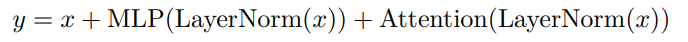 研究者在每个 Transformer 模块中使用「并行」方法,而不是标准的「串行」方法。具体来说,标准方法可以写成: