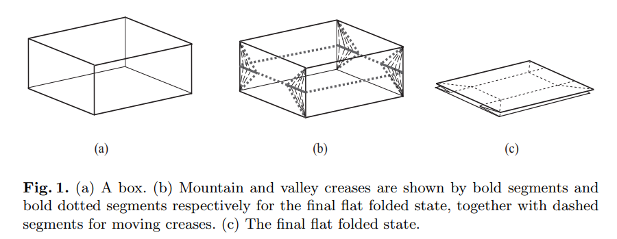 在这篇论文中,他们研究了一类更简单的形状的折叠问题:正交多面体,其面以直角相交,并且垂直于 x、y 和 z 坐标轴中的至少一个。满足这些条件会强制形状的面为矩形,这使得折叠更简单,就像折叠冰箱盒一样。