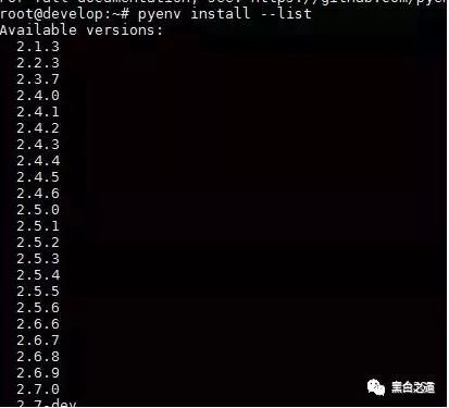 我们通过pyenv的install命令,可以查看pyenv当前支持哪些Python版本,该命令会列出可以用 pyenv 安装的 Python 版本。列表很长,仅列举其中几个,如下所示: