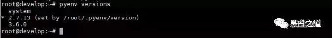 至此,pyenv就安装完成了,我们可以通果下面的命令验证pyenv是否正确安装并获取pyenv的安装信息:pyenv --help