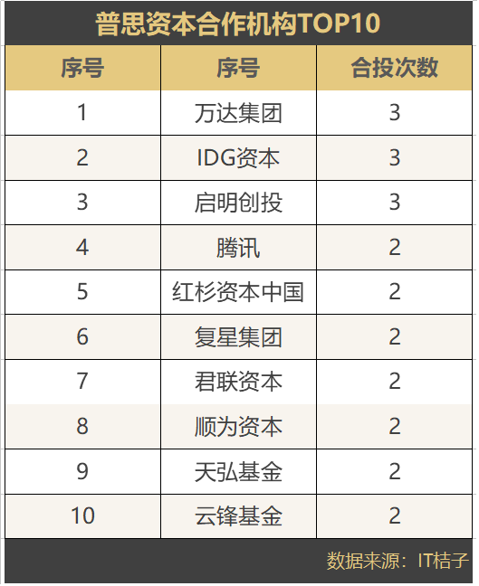而在合作投资方面,除了亲爸爸万达集团以外,普思资本也已经与红杉资本中国、腾讯、IDG 等知名 VC 和大公司达成了数次的友好合作。