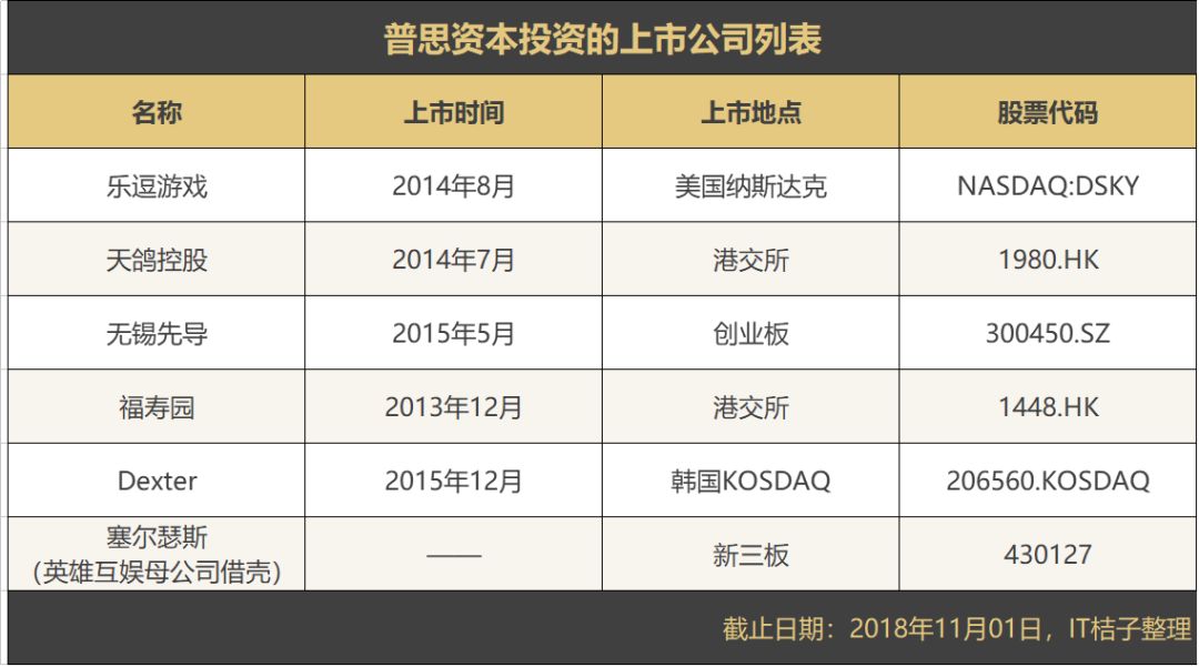 这些投资也给普思资本带来了不错的回报。至今,成立九年到普思资本已经投出了 6 家上市公司,另外还有一家公司已经递交上市申请。
