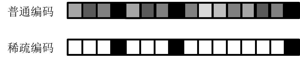 稀疏编码从字面上可以理解为具有稀疏结构的一种编码方式。相比于一般的编码结构,稀疏编码通常只需要使用到编码中的少数几个维度即能刻画对应的事物(见图1)。直观上讲,这种编码方式便于存储和访问,因此也便于检索。有一种游戏,不少人都玩过,有一人心中默想一样事物,周围的人通过不断的提问,去猜出刚才他心里想的。例如,“能吃么?”—是(答);“是水果么?”—是;“一般是红色的么?”—是;“要削皮么?”—是;“北方的产地主要在山东么?”—是。相信此刻“苹果”这个答案大家一定猜的八九不离十了吧。和玩这种游戏一样,不仅要猜出出迷人心里所想的,更要用采用最少的回合数(问题)来完成。采用稀疏编码和玩这种游戏有类似的地方,需要利用最少的有效编码位,准确地区分和刻画事物。那么,如何来获得稀疏编码呢?