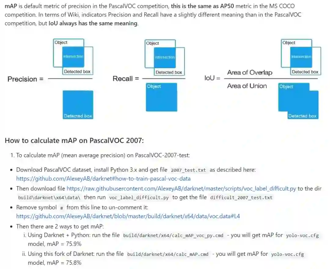 除了基本的编译、训练、测试教程外,本项目还提供了详细的:训练检测自定义物体的网络教程、训练技巧、评估网络性能(如计算mAP)和提升检测网络性能技巧等