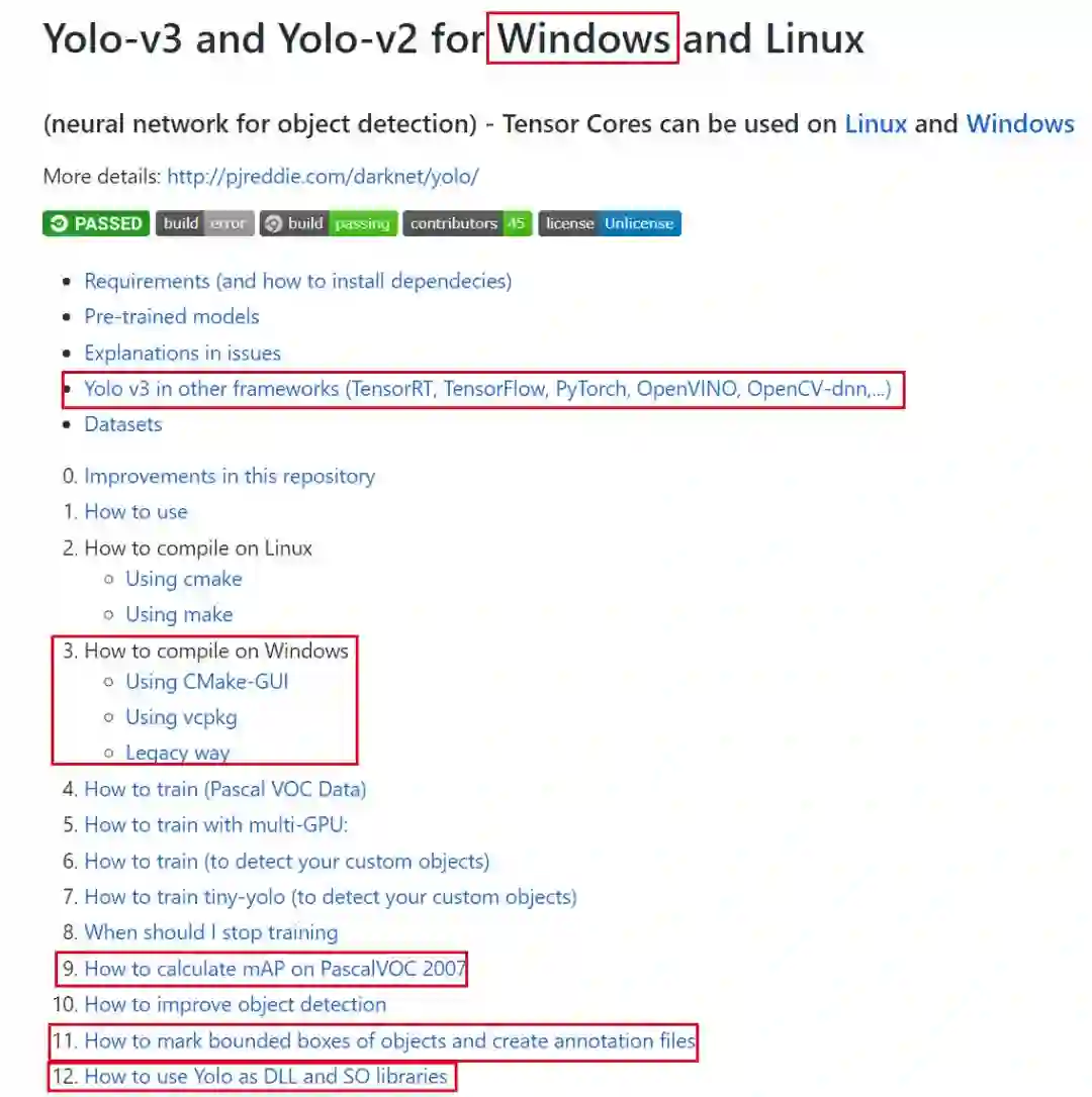 Amusi 认为这个是该项目火的起点,因为原darknet是基于C的项目,而且只提供了linux环境下的编译说明。所以对很多在 Windows下开发的同学,这就直接劝退了呀。虽然自己上手用CMake改,也不是很麻烦,但...还是劝退了呀(其实Amusi当初就是冲着这个才关注该项目的)