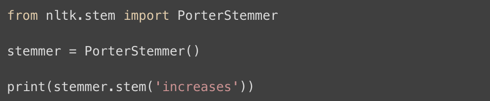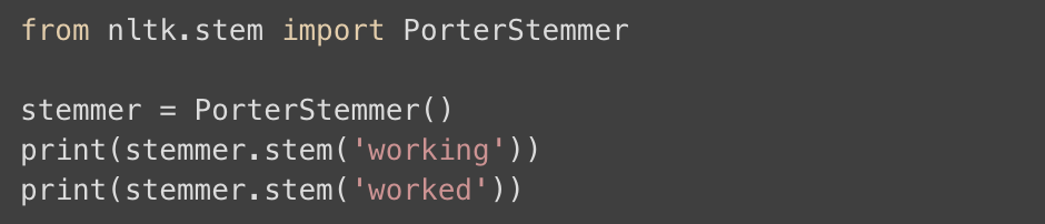 有很多种算法可以避免这种情况,最常见的是波特词干算法。NLTK有一个名为PorterStemmer的类,就是这个算法的实现: