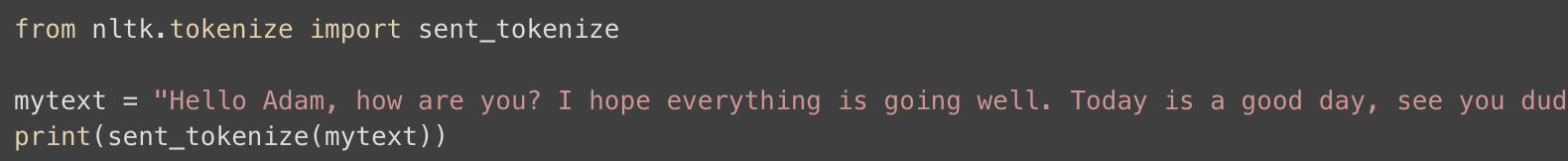 在之前我们用split方法将文本分割成tokens,现在我们使用NLTK来Tokenize文本。