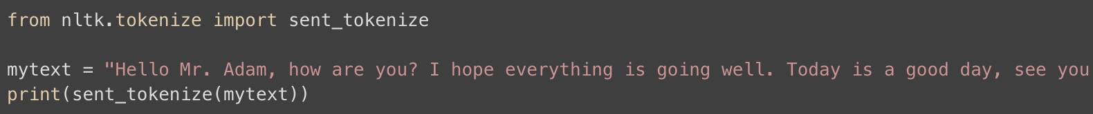 这样如果使用标点符号拆分,Hello Mr将会被认为是一个句子,如果使用NLTK: