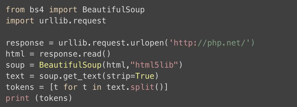 现在我们从抓取的网页中得到了一个干净的文本。 下一步,将文本转换为tokens,像这样: