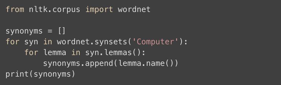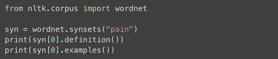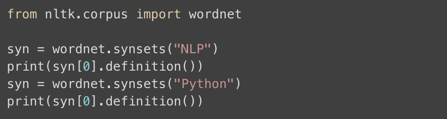 WordNet是一个为自然语言处理而建立的数据库。它包括一些同义词组和一些简短的定义。