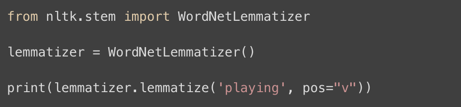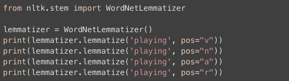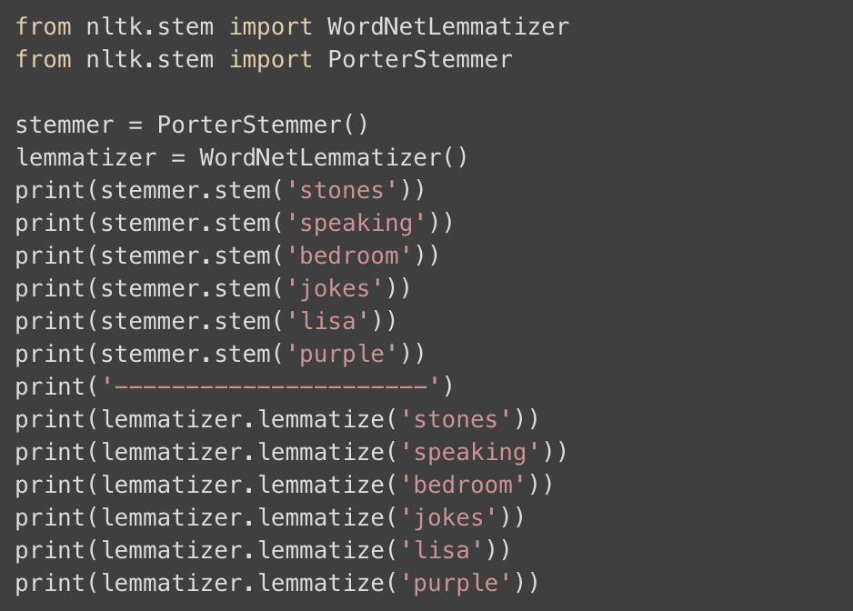 单词变体还原类似于词干,但不同的是,变体还原的结果是一个真实的单词。不同于词干,当你试图提取某些词时,它会产生类似的词: