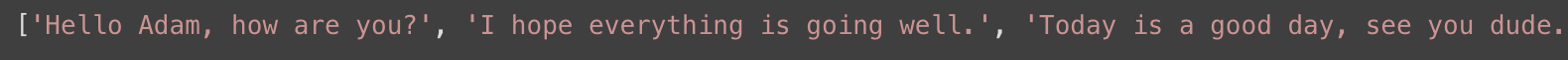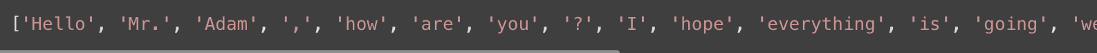 这是你可能会想,这也太简单了,不需要使用NLTK的tokenizer都可以,直接使用正则表达式来拆分句子就行,因为每个句子都有标点和空格。