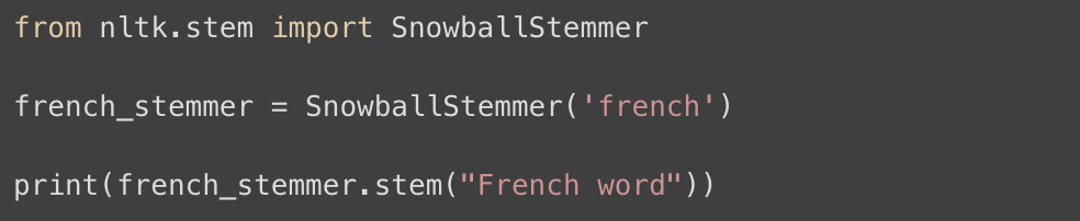 你可以使用SnowballStemmer类的stem函数来提取像这样的非英文单词:
