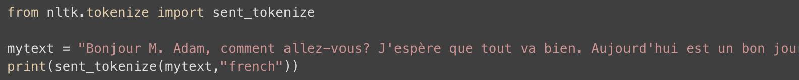 Mr.这个词也没有被分开。NLTK使用的是punkt模块的PunktSentenceTokenizer,它是NLTK.tokenize的一部分。而且这个tokenizer经过训练,可以适用于多种语言。