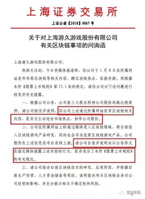 11日晚间,上交所就区块链事给游久游戏发乐问询函:“是否为主动迎合市场热点,炒作公司股价。”