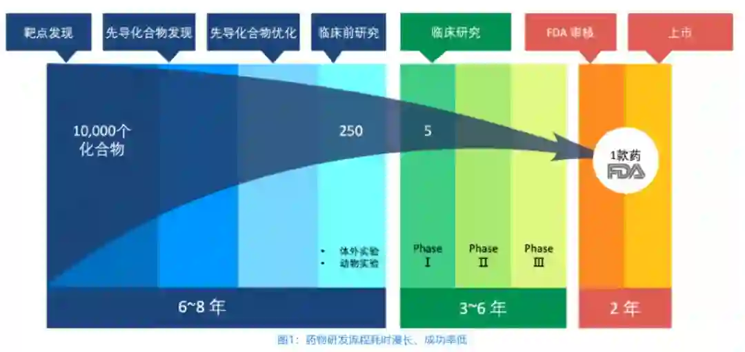 一款药物的诞生周期极其漫长,从最早的新药研发到上市,至少要经历 10 年。