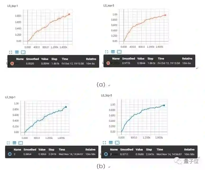图4(a)所对应的模型在验证集上Top-1 精度≥75%,训练耗时为10分06秒;图4(b)所对应的模型在验证集上Top-5 精度≥93%,训练耗时为10分58秒。